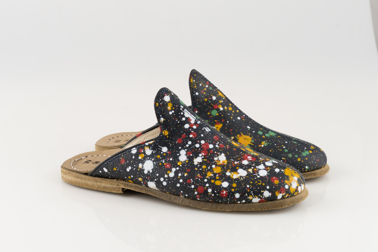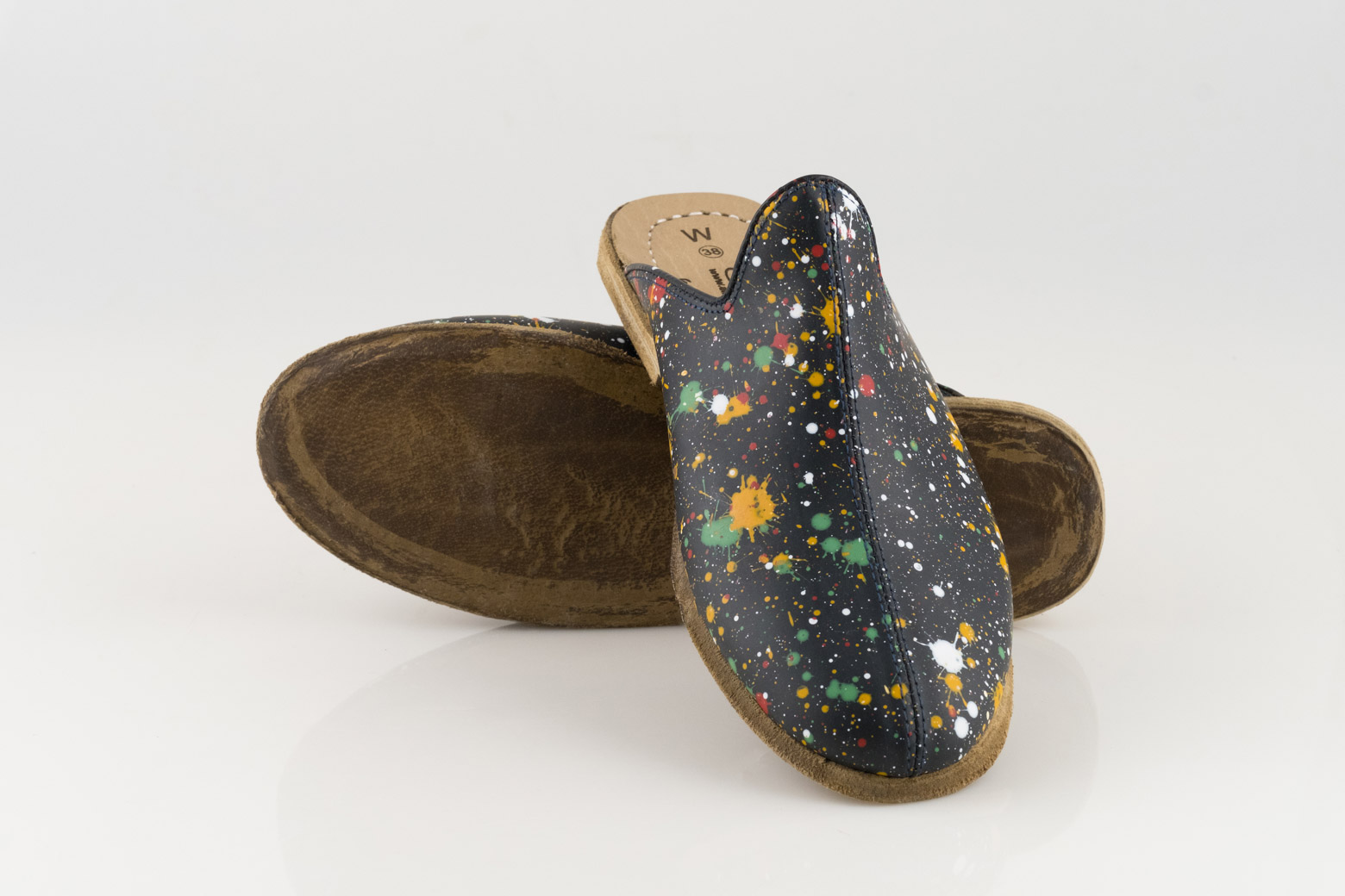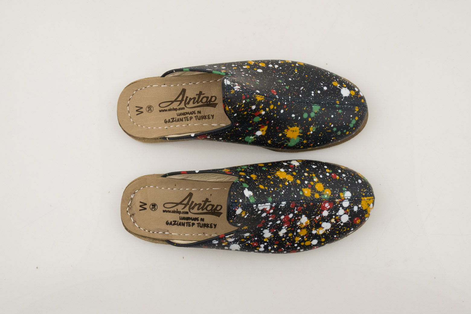 %100 Hakiki Deri Püskürtme Boyalı Siyah Bayan Terlik
